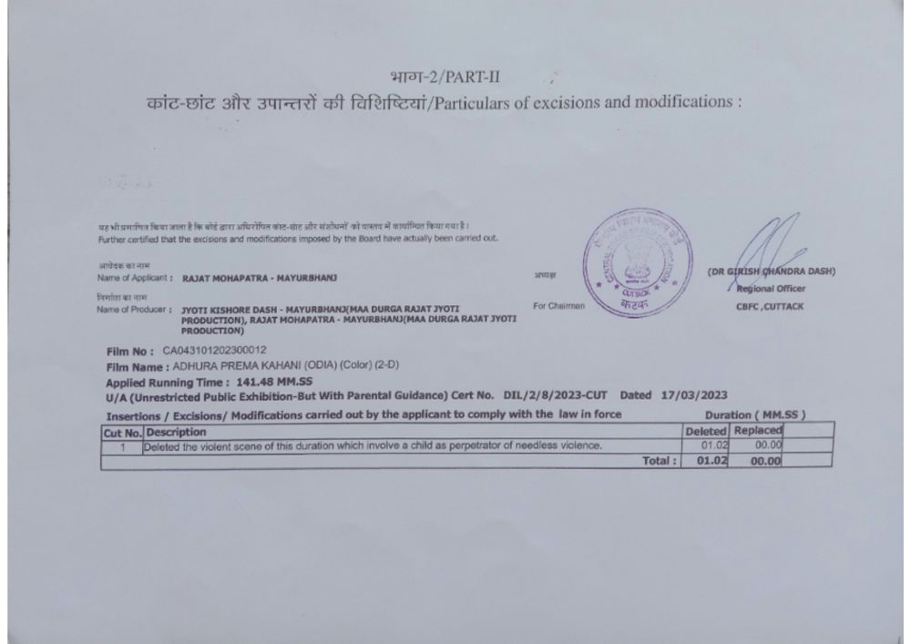 Crew: Niranjan Barik (Director), Baidyanath Dash (Music Director)