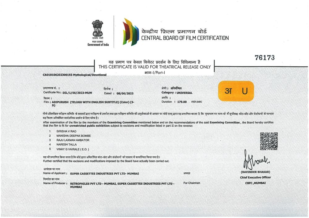 Release Dates: 16 Jun 2023 (India | Wide Theatrical Release)