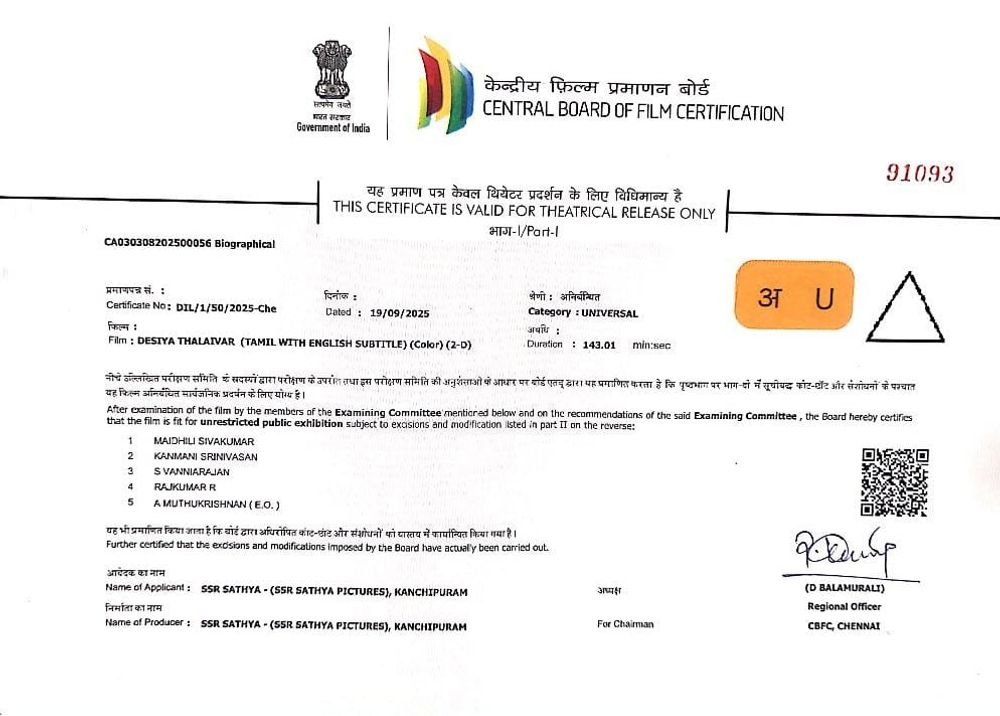 Desiya Thalaivar is a Tamil biographical film centered on Pasumpon Muthuramalinga Thevar. The movie highlights his significant role as a freedom fighter and delves into his efforts in the Temple Entry movement.