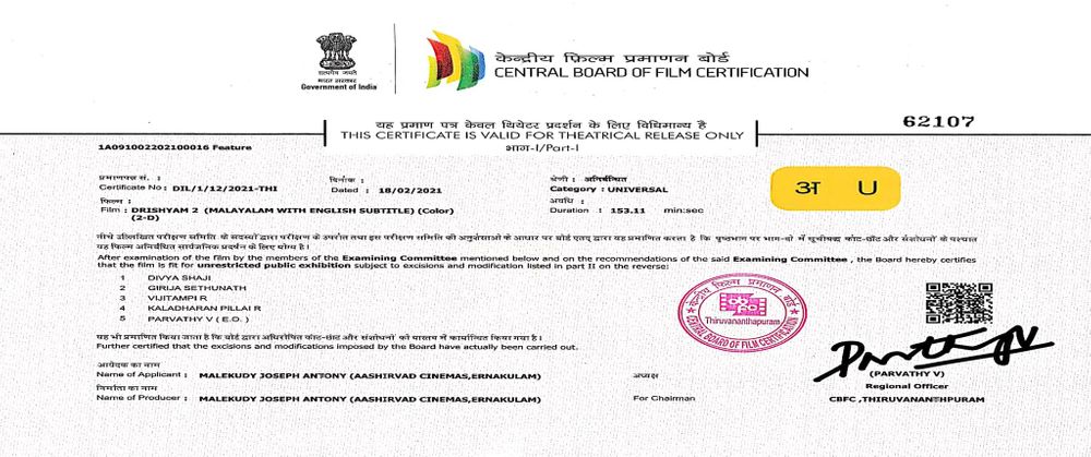 Malayalam Name: ദൃശ്യം 2