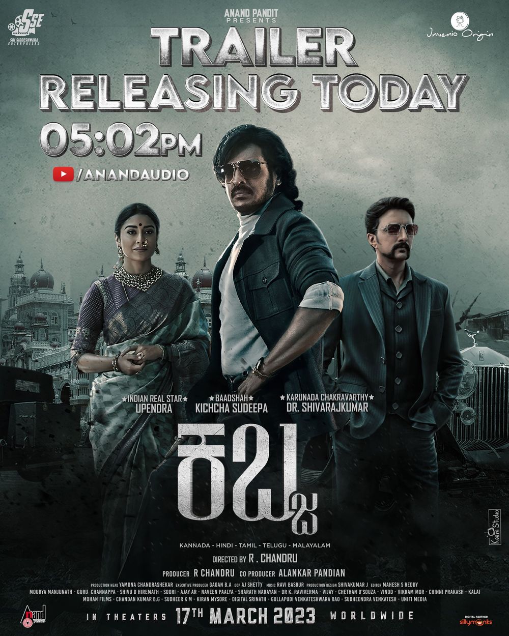 Crew: R Chandru (Director), Kiran Mysore (Assistant Production Manager), Mahanthesh (Assistant Production Manager), Arjun Shetty (Director of Photography), Chethan Handattu (Music Producer), Ravi Basrur (Music Director)