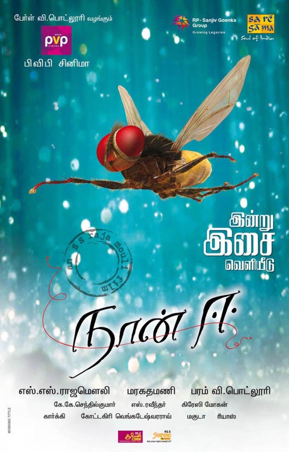 Bindu, grieving the fly's death, makes a necklace using the only remainder of Nani the fly- its wing. While going to work, an eve-teaser abuses her, only for a fly to attack him. This fly is revealed to be Nani, again reborn to protect Bindu forever.