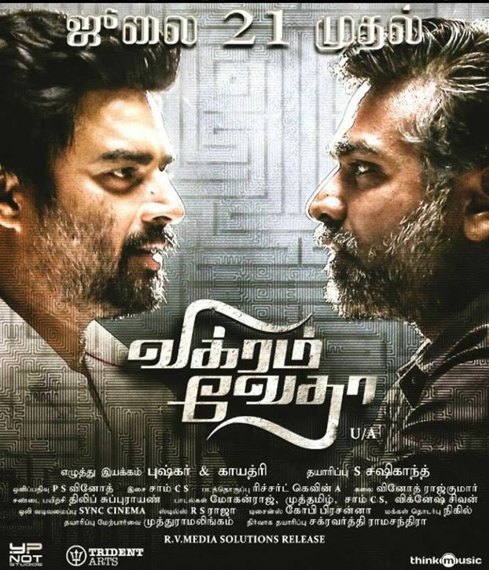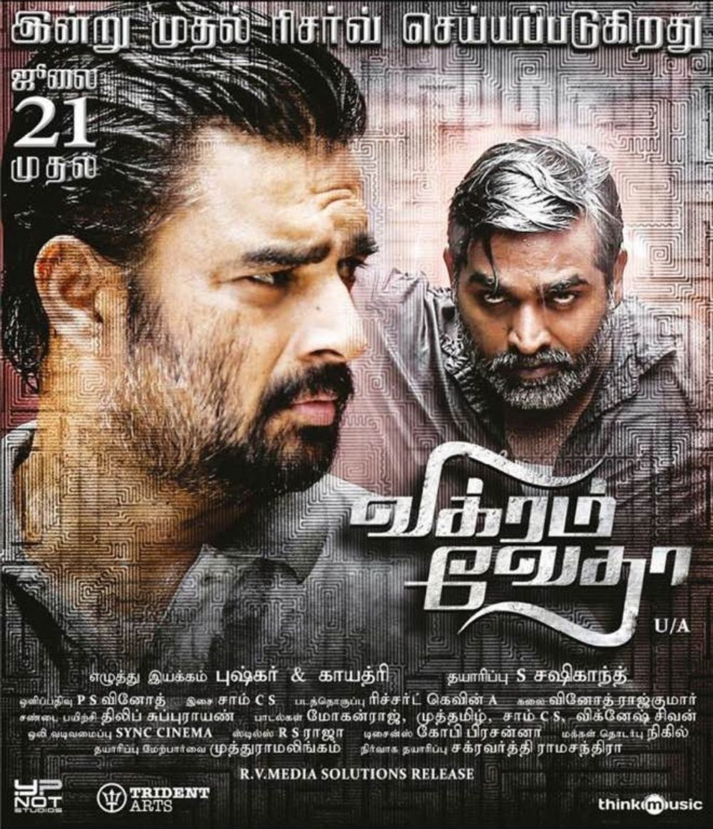 Movie is well narrated under the concept of Vikramadithya stories. Great consistency from Madhavan to deliver fabulous movies straight in a row. All the casting in the Police roles are exceptional. The stand out performance is from Vijay Sethupathi, who from the entry of Vedha till the climax has kept the audience on tows. The sheer charectoristics of a street goon with a heart for the family was safe in the hands of Vijay. This is a must watch movie and I would personally rate the movie above average.